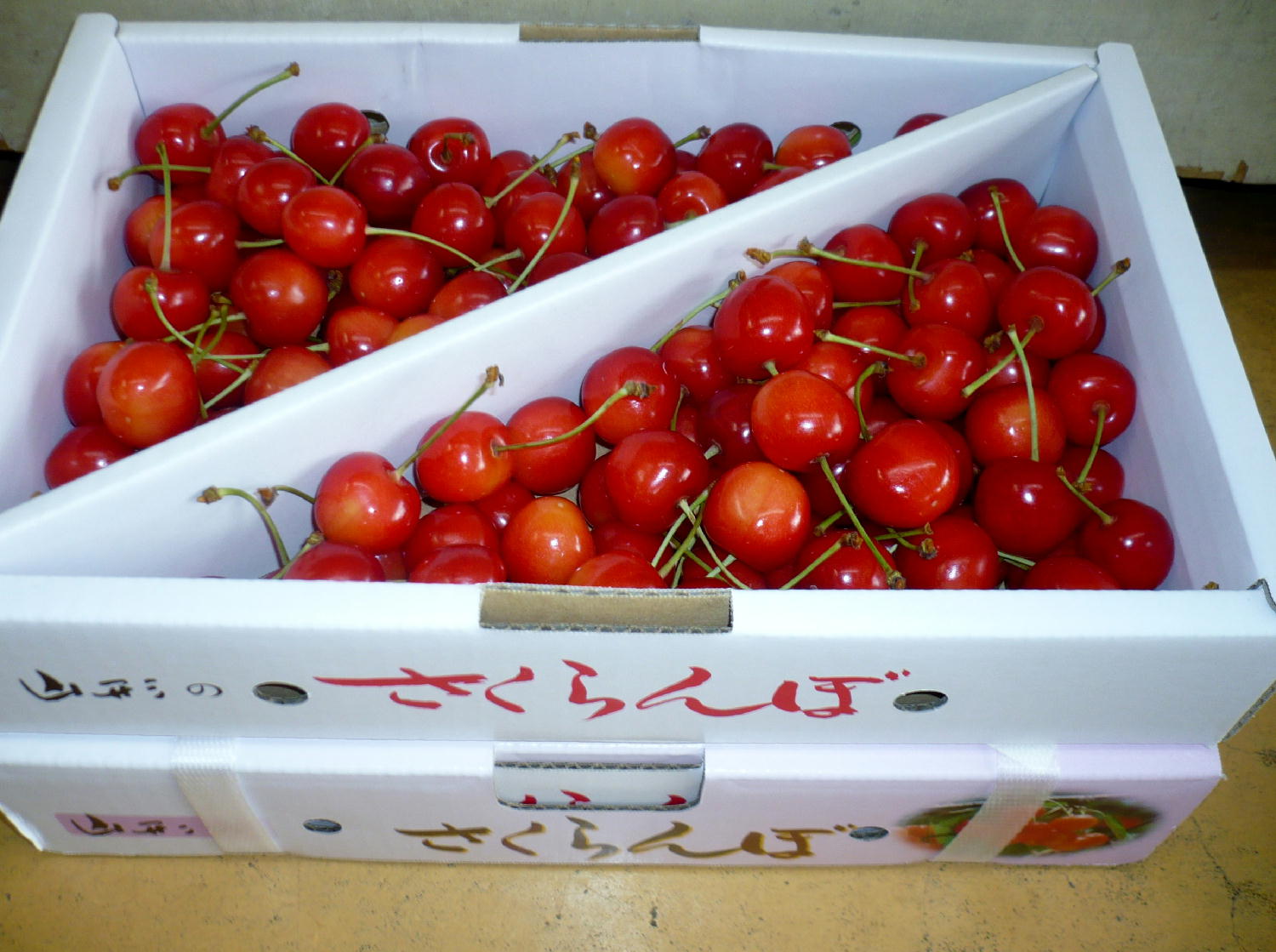 山形のさくらんぼは、初夏のダイヤと言われるほどとても美味しい!。 同じさくらんぼの樹でも、上の方に実ったさくらんぼは、太陽の恵みを受けて絶品。 少々高いがその物だけを丁寧に収穫しました。 山形のサクランボは日本一。この里で生まれたさくらんぼを あなたの食卓へお届け致します。 |