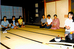 私たち茶道クラブは、現在男性3名、女性10名のメンバーで付きに3回、毎週木曜日の夜、大平美智子教授のもとで活動しています。